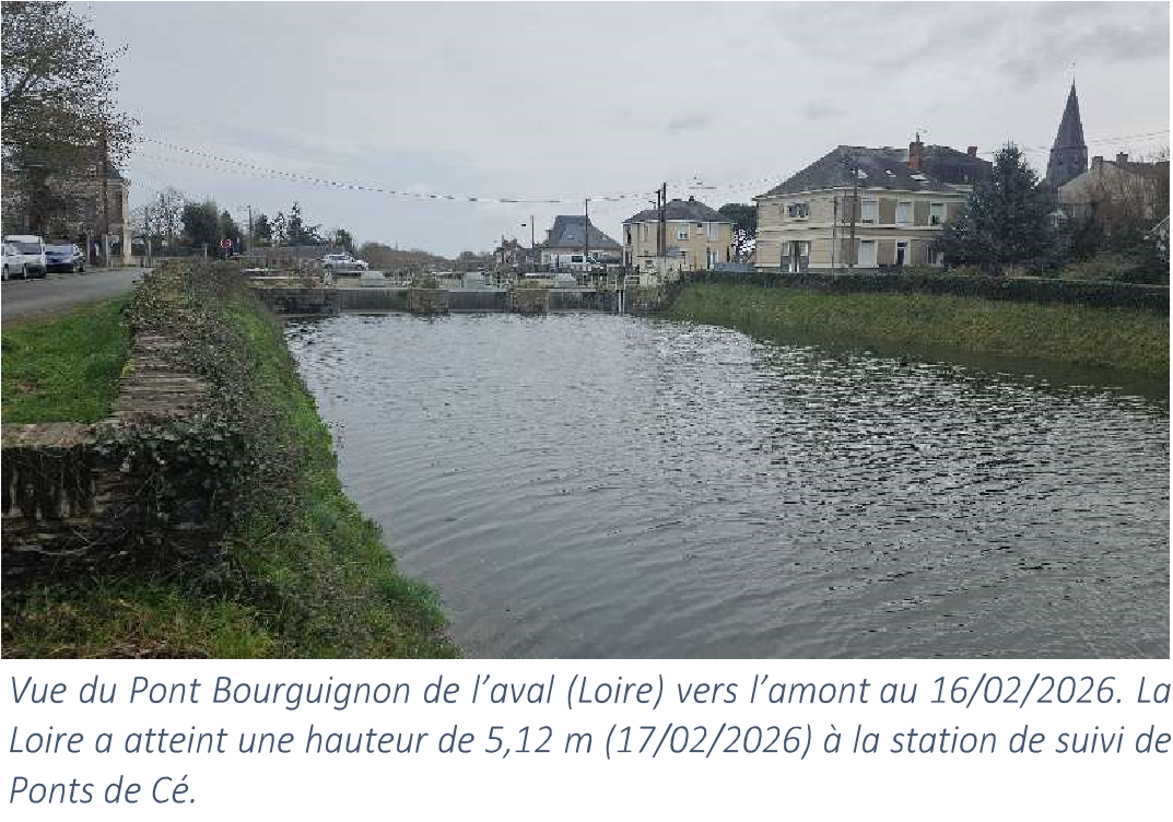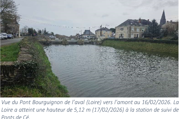 À ce jour (17 février 2026), le niveau de la Loire atteint une cote de 5,11 m, en hausse, à la station de suivi des Ponts-de-Cé, selon les données communiquées par Vigicrues.